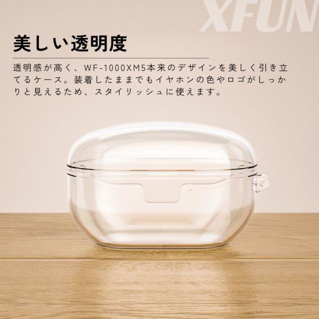 透明感が高く、WF-1000XM5本来のデザインを美しく引き立てるケース。装着したままでもイヤホンの色やロゴがしっかりと見えるため、スタイリッシュに使えます。