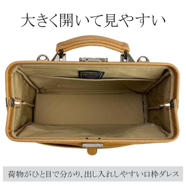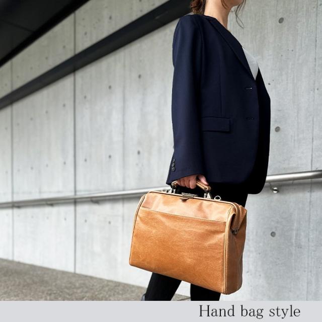 ◆ スタイリッシュでありながらレトロな雰囲気のある口枠ダレスバッグ。