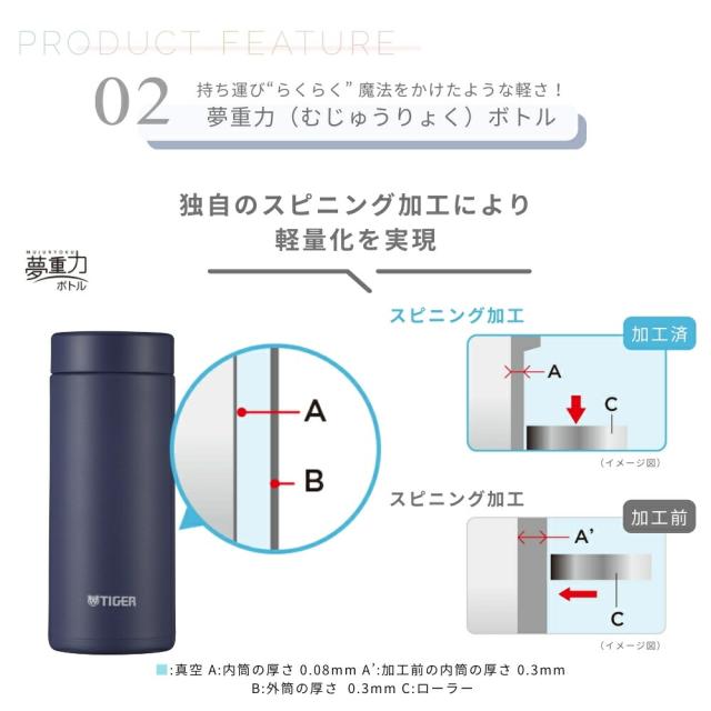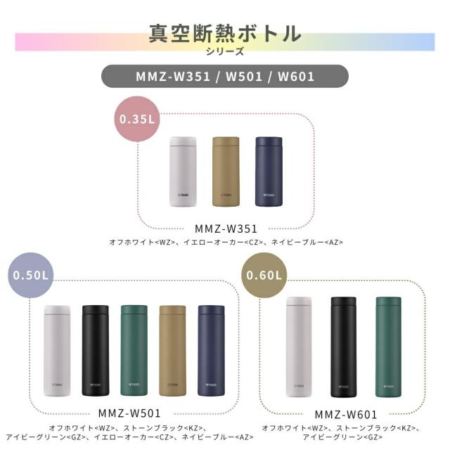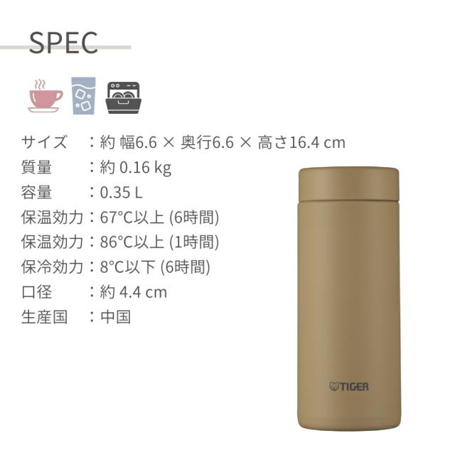 タイガー 水筒 マグ 魔法瓶 真空断熱ボトル 350ml MMZ-W351 保温 保冷 パッキン一体型 スクリュー 食洗機対応 軽量 スポーツドリンク ステンレス スリム 直飲み 夢重力ボトル