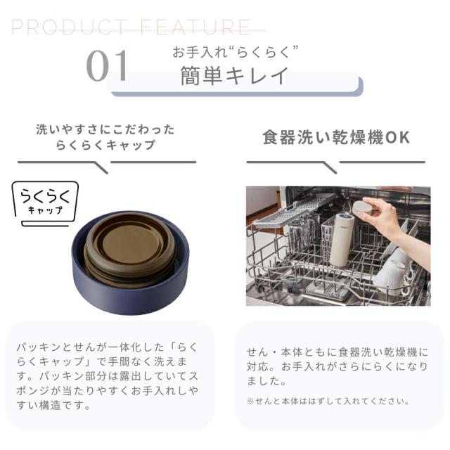 「洗いやすいパッキン一体型せん」&「食器洗い乾燥機OK」でお手入れがらくらく!