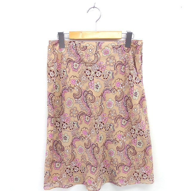 【中古】オットー OTTO フレア スカート ひざ下丈 花柄 薄手 サイドジップ 15 茶 ベージュ /TT レディース