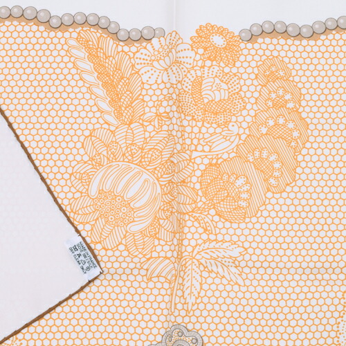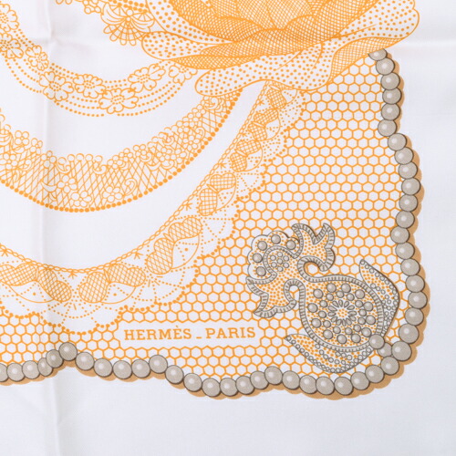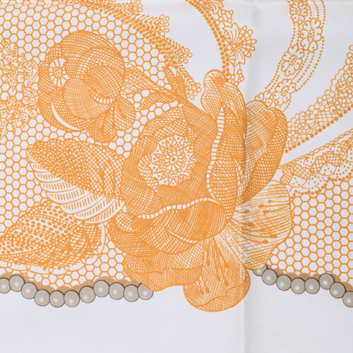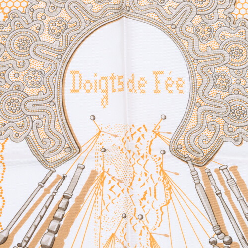 【SAランク】 エルメス HERMES スカーフ カレ90 シルク Doigts de Fee 妖精の指 ドット フラワー 花柄 バンダナ 大判 ショール レディース メンズ ホワイト オレンジ ブラウン 極美品 中古 tkh382