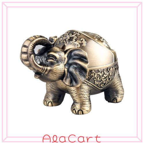 Ansimple 灰皿 蓋付き灰皿 卓上灰皿 合金ボックス 収納ボックス 合金製 アンティーク調 卓上 屋外 店舗 オフィス 置物 インテリア (象の