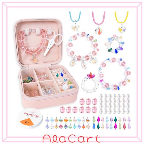 セット内容:カラフルなビーズ・キラキラなチャーム・ネックレス・0.7mmシリコンゴム・ミニハサミ・ジュエリーボックスがついています。細かいビーズがあるので、難易度アップします〜物作りが好きな子どもはチャレンジしてみてください!