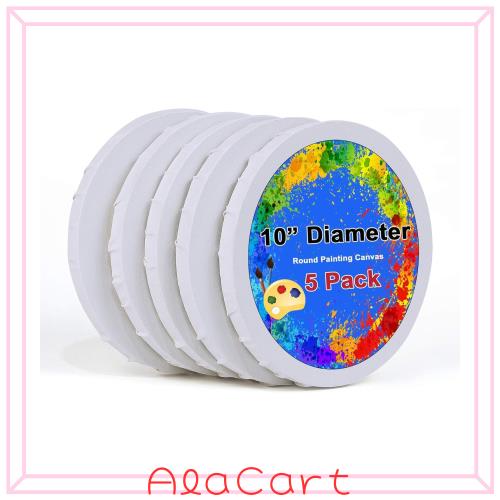 【5枚セットで描き放題】直径25cmのキャンバスが5枚入ります。かわいいサイズで初心者からプロまでも適用。壁掛け用金具が付きます。