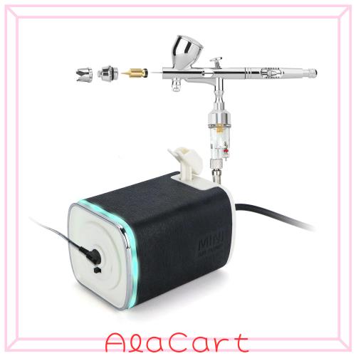 Anesty AQuieto 静音 エアブラシ コンプレッサー セット 工具不要の簡単着脱ノズル 0.3mm口径 エアーブラシ 安定した空気圧 小型 軽量 エ