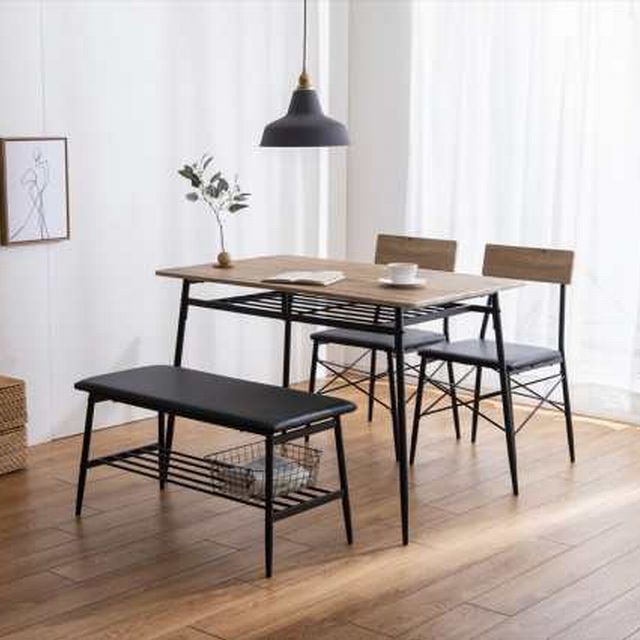 ★メーカー保証付★ ダイニングテーブル ベンチ チェア 4点セット 幅110cm カフェ風 椅子 ダイニングセット メーカー直送 送料無料