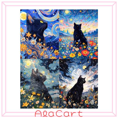 LEADINTOP ダイヤモンドアート 4枚 スクエアビーズ 猫 30x40cm ダイヤモンドペインティング 四角いビーズ スクエア アートセット モザイ