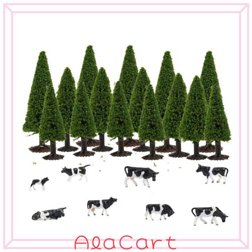 15本入り 樹木 モデルツリー ツリー模型 + 8本入り 牛模型 樹木の高さ:約6.3cm、7.6cm、10cm,1:75-1:200,HO TT O N比率などに適用。 牛模型比率:1/87 HO比率などに適用 三次元モデルを作るために不可欠な木です。 緑豊かな緑の木々は、モデルランドスケープの外観を改善し、道路やレールの傍に現実感を与えることができます。