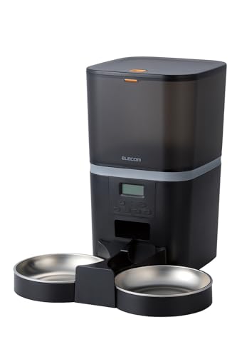 エレコム 自動給餌器 中・小型犬 猫用 6L 2皿 タイマー機能付 録音機能付 ブラック PET-AF02BK