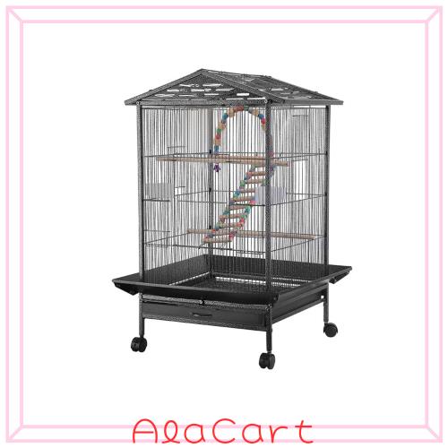 【優れたデザイン 】鳥ケージの天窓は開けられ、愛鳥との密着に便利です。引き出しトレー設計で、お掃除の時、一回でゴミを出すことできます。底にキャスターがついていますので、自由に移動できます。
