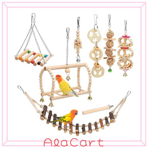 インコ おもちゃ 8点セット 木製 鳥のおもちゃ 吊り下げ 噛む玩具 ブランコ はしご 止まり木 オウム セキセイインコ オカメインコ バード