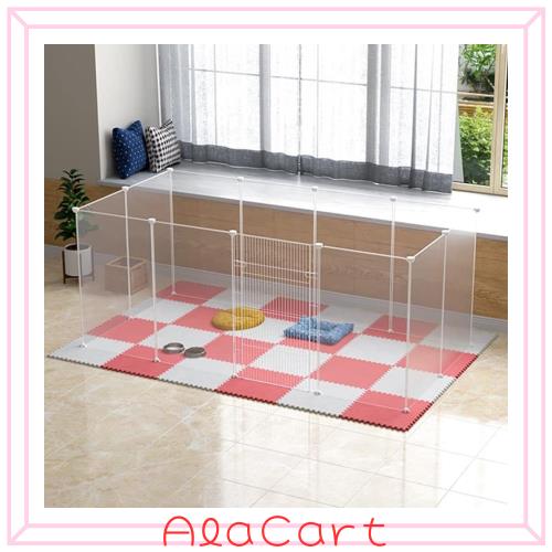 ? ※設置するお部屋や用途に合わせてお好みの形にジョイントできるペットサークルです。 ? ※正方形、長方形、L字型等、お好みの形にレイアウトできます。 ? ※テレビやAV機器の保護、玄関や階段への出入り防止、棚や仕切りなど様々な用途でご使用できます。 汚れたり水がこぼれてしまっても簡単に拭き取ることができます。 中からも外からも周りの様子が見えるのでペットも飼い主様も安心です。 ? ※ペットが出入りしやすいドア付きのパネルが1枚付属されています。 ? ※また、ドアが外側に開く向きで取り付けてください。 ? ※プラスチック製で汚れても丸洗いできる 汚れやニオイが気になったら手軽に丸洗いできる、錆びつく心配のないプラスチック製のケージです。 ? ※「パネル」を組み合せて構成されているから組み替え、拡張、リペア、が簡単にできます。 組み換え-- 扉、パネルの位置を変える、細長の構成にする等、ペットフェンス 内でのパネル毎の組み換え、配置がパネル構成の範囲内で可能です。 拡張-- 成長したので、1頭増えたので、ペットフェンス広くしたい場合、別売のパネルを追加すれば拡張が簡単に可能です。 リペア--汚損・損耗した場合、丸ごとではなくパネルごとに入れ替えることが出来るので永続的な使用が出来ます。 ? ※商品仕様:11枚 x 透明なPPパネル(幅35 × 高45?) パネルサイズ:45×35cm(1枚) 1枚 x 金属網状ドアパネル(幅35 × 高45?) 24個 x ジョイントコネクター バックル 40本 x 結束バンド 1本 x 木槌