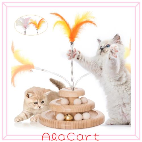 ◆商品名:猫 おもちゃ 猫 ボール ぐるぐるタワー ペット用品: 猫遊び用 鈴入りボール タワー 回転 木製おもちゃ猫 玩具 - 猫 運動不足 ストレス解