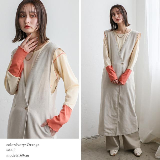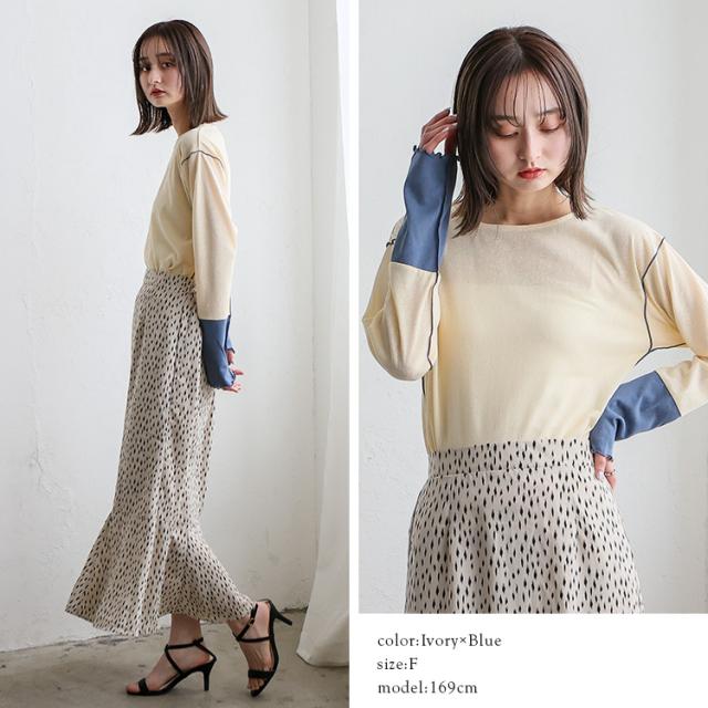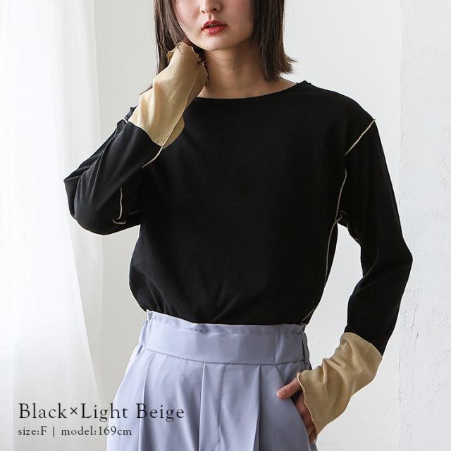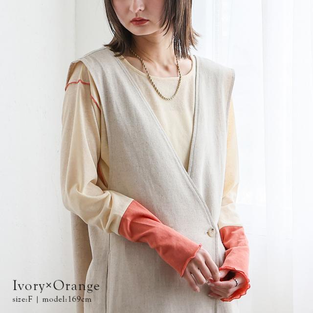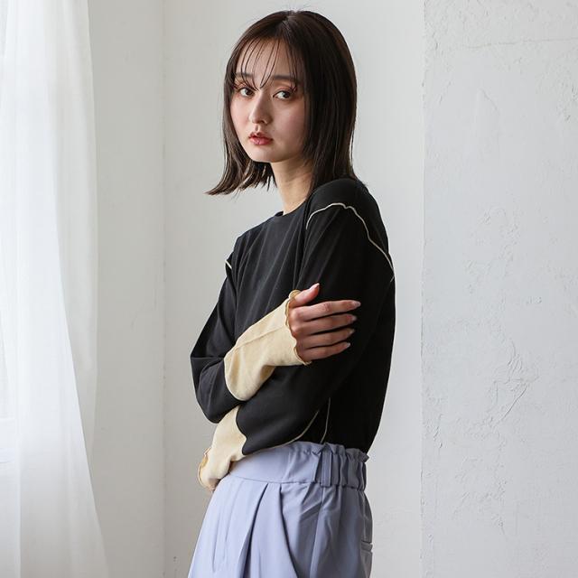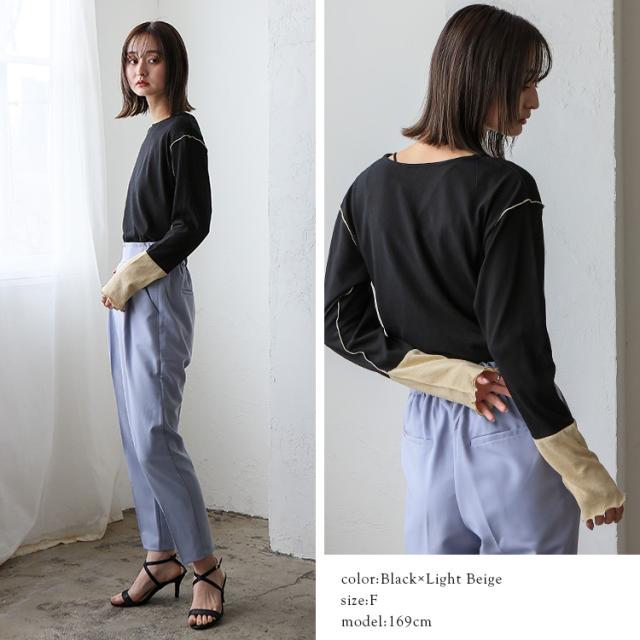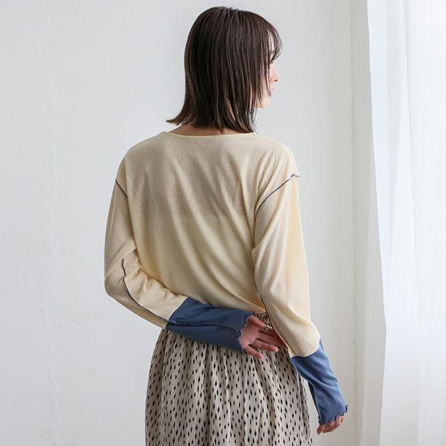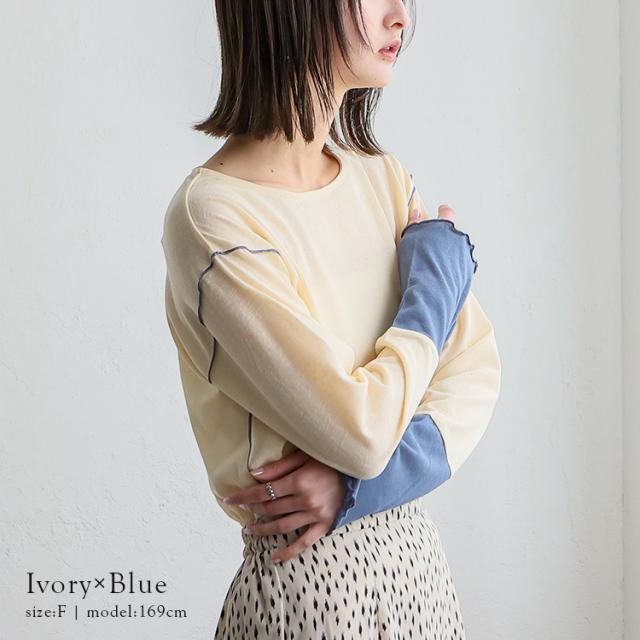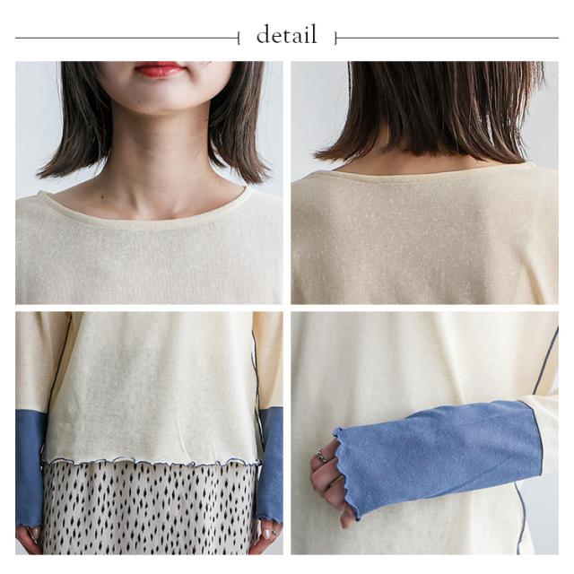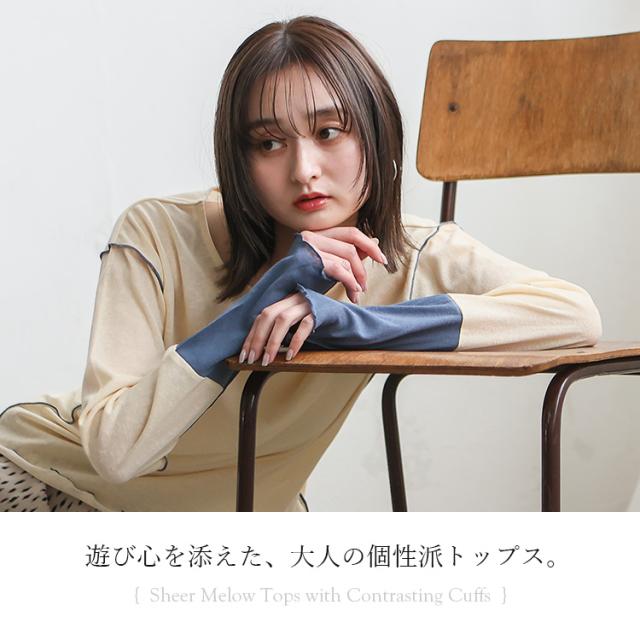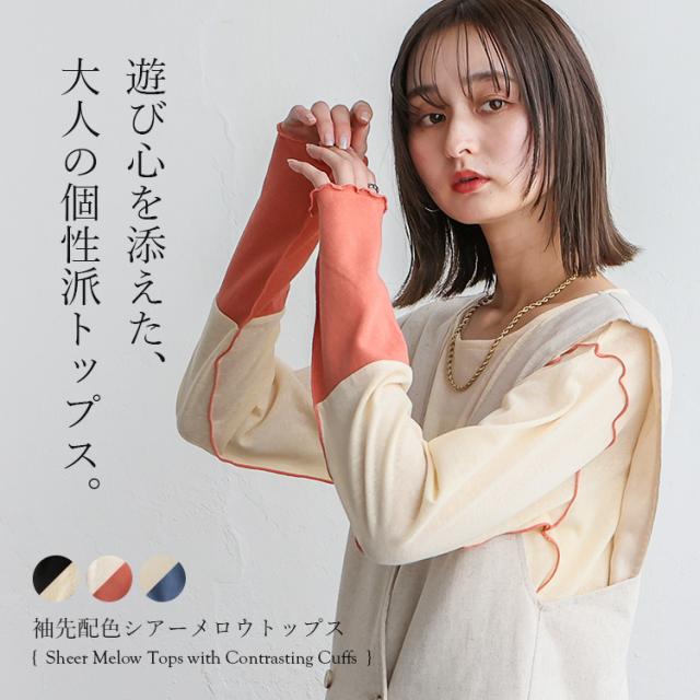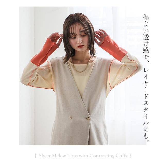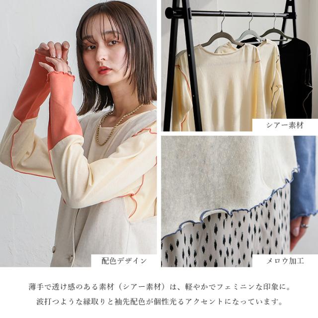 シアー インナー 長袖 メロー カットソー レディース きれいめ 重ね着 レイヤード ロンT メロウ トップス バイカラー 袖切り替え 配色 パイピング クルーネック フリル 透け感 おしゃれ コットン 綿【メール便】 blc-y29503