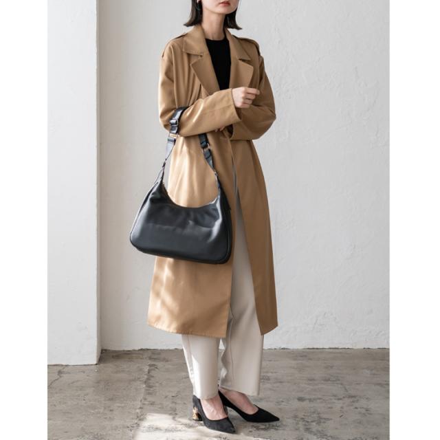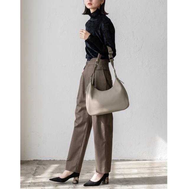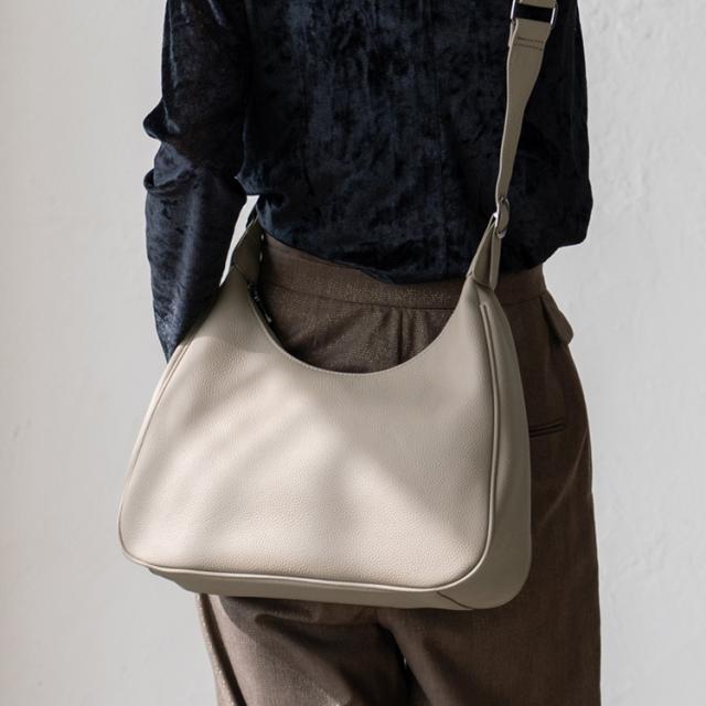 月の半分を切り取ったような曲線的な形状が特徴的なショルダーバッグです。