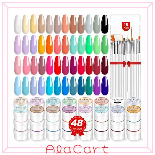 Saviland 48色ジェルネイルセット 15本のネイルブラシ付き カラージェル ネイルポリッシュセット DIYネイルアートデザイン ネイルサロン