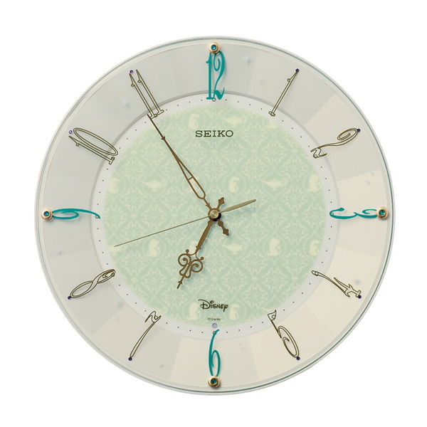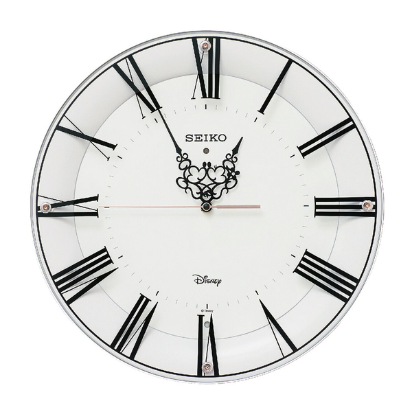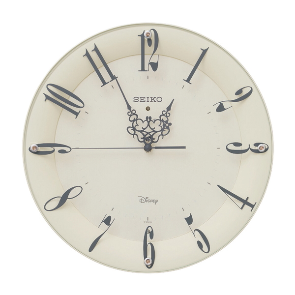 ミッキーとミニーが一時間に一度キスをするロマンチックな針が特長的な掛時計です。すれ違う際にはしっぽ同士でハートを形作ります。