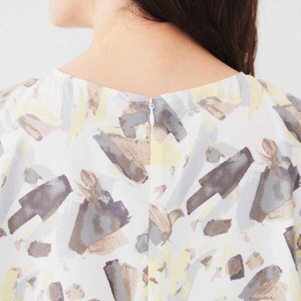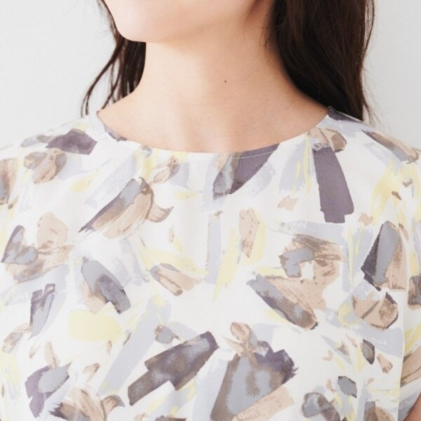 アンタイトル(UNTITLED)/【オンオフ使える手洗い可】ペイントプリントブラウス