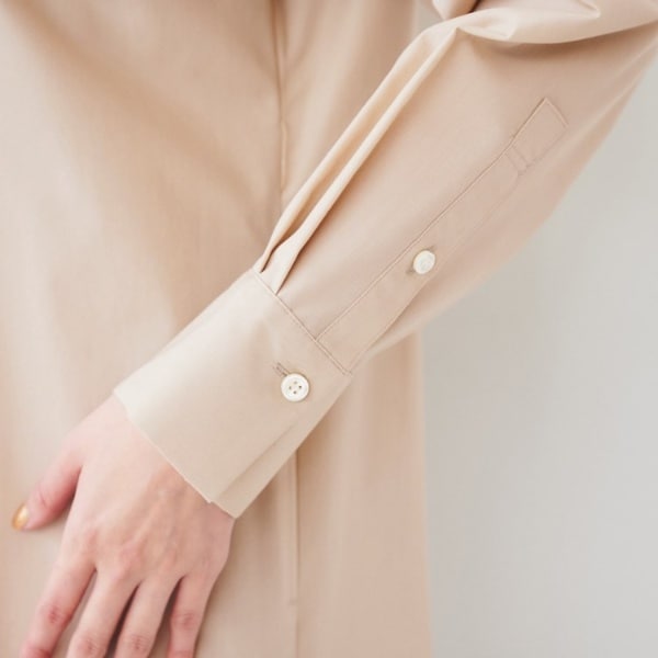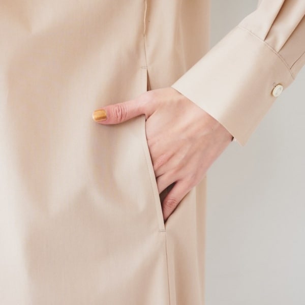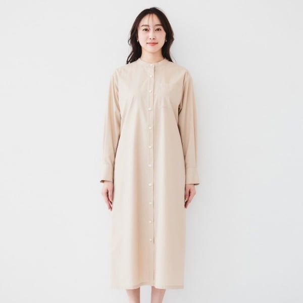 バンドカラーのシャツワンピースは、1枚着でも羽織としても便利なアイテムです。