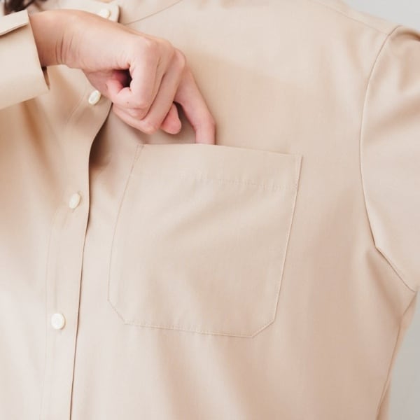 仕上げに特殊な反撥樹脂加工を施す事でポリエステル/コットンの独特な固さを取り除き、合繊のような柔らかい風合いにしているのが特徴です。