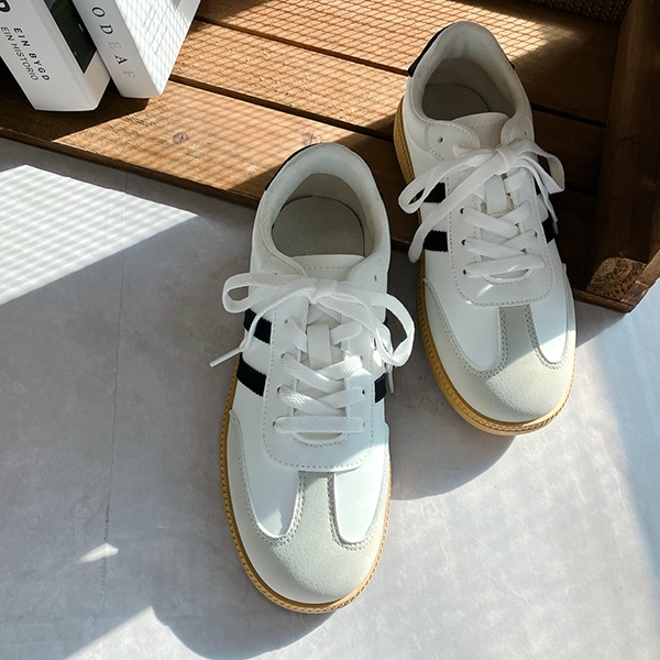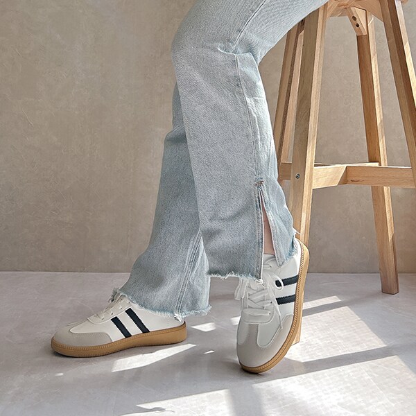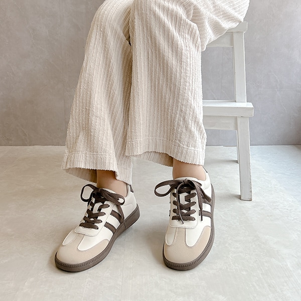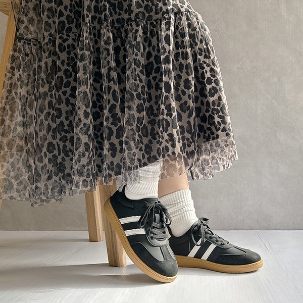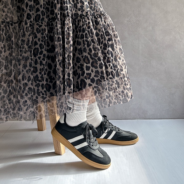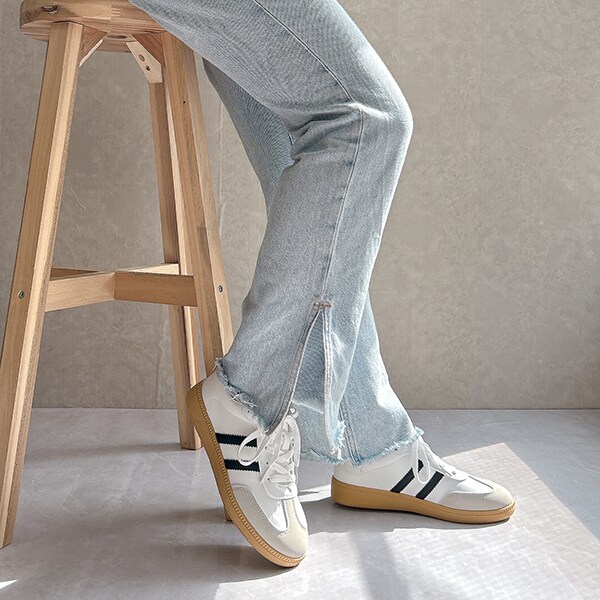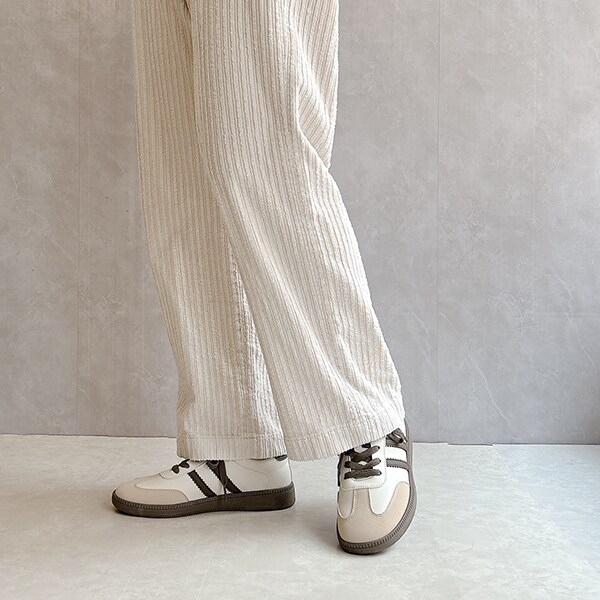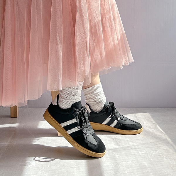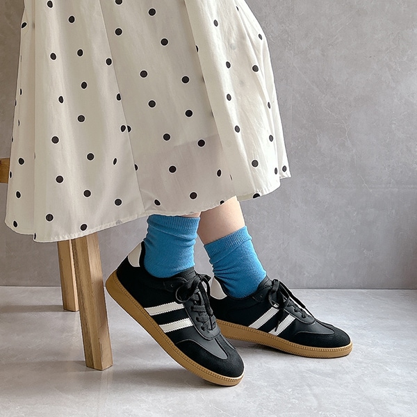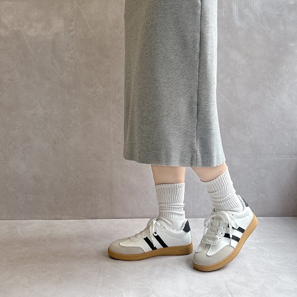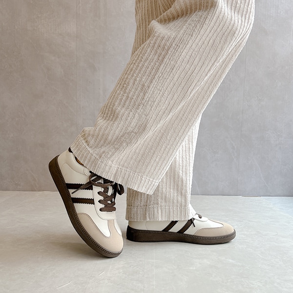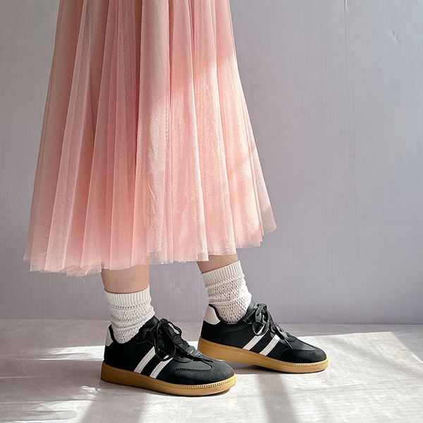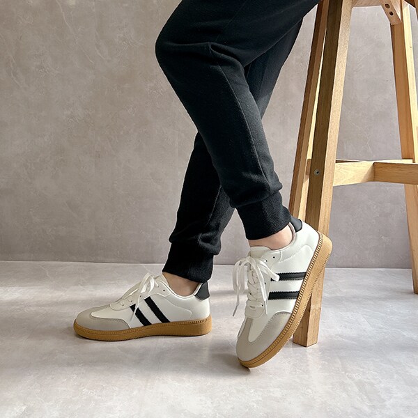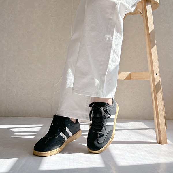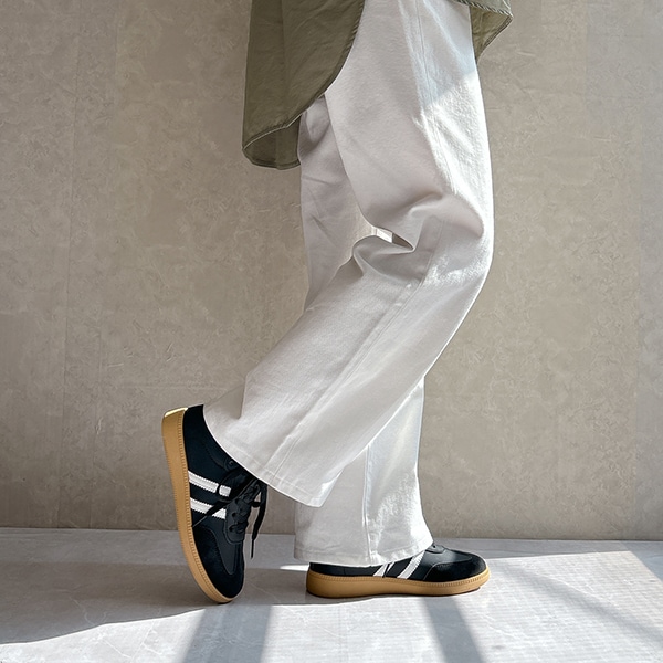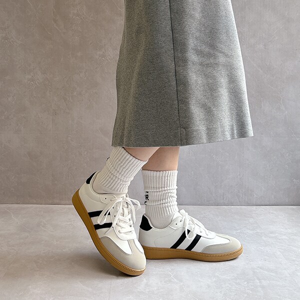 シンプルデザインで、キレイめスタイルにもマッチするローテクスニーカーは今年のマストバイアイテム!