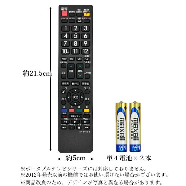 シャープ テレビリモコン AQUOS アクオス 電池付き 設定済み SH-E615-B LC-32LE185 LC-32CHG4042E LC-40FG5242E など対応 (管理S) 送料無料