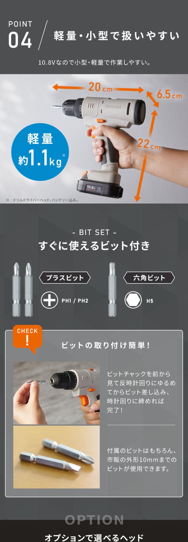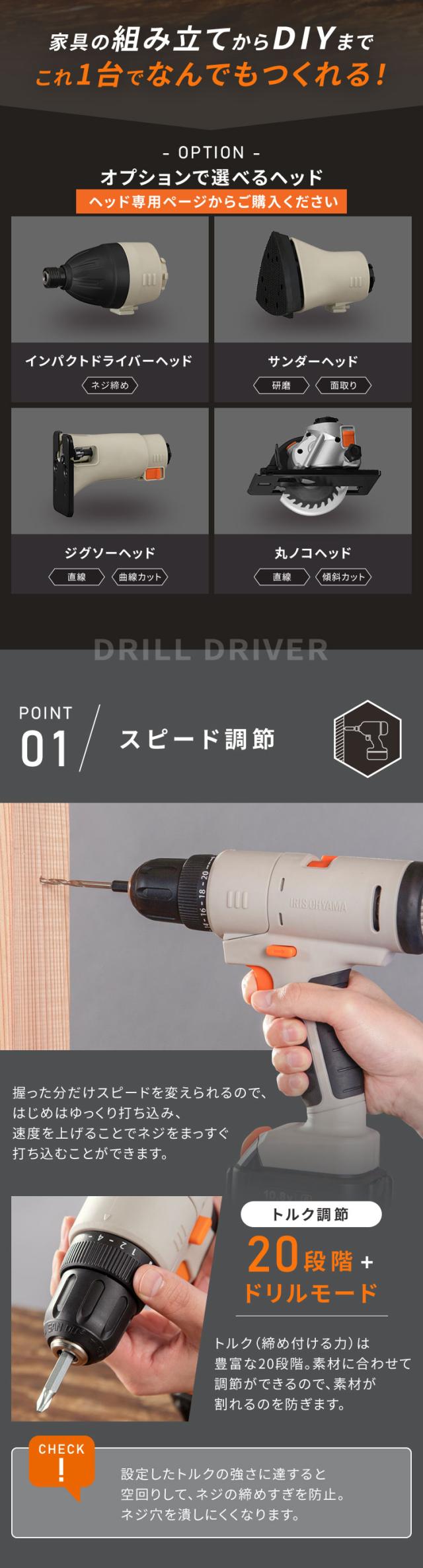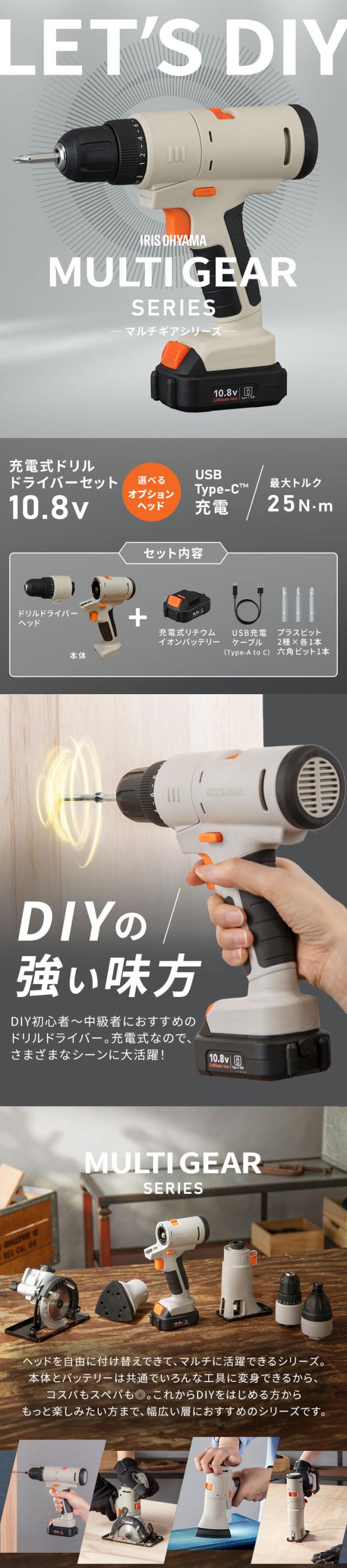 (検索用:マルチツールセット 電動工具 充電式 ドリルドライバー 本体 10.8Vマルチギア インパクトドライバー ドリル バッテリー 工具 DIY 初心者 中級者 軽量・4967576735964・アイリスオーヤマ)