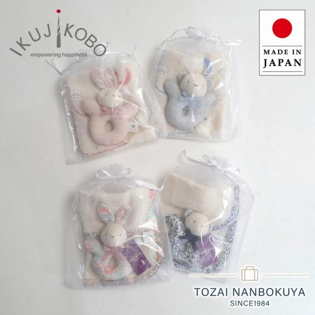 出産祝い ギフト 贈り物 ギフトセット ラッピング プレゼント タオルハンカチ にぎにぎ ラトル ガラガラ ガーゼハンカチ 男の子 女の子 IKUJIKOBO リバティ LIBERTY. 育児工房 おしゃれ オシャレ シンプル ナチュラル 赤ちゃん 新生児 ベビー 日本製 綿 0歳 オーガニックコットン綿 100コットン100 誕生日 お洒落 新生児 100日祝い うさぎ くま お土産手 土産 プチギフト ベビーシャワー