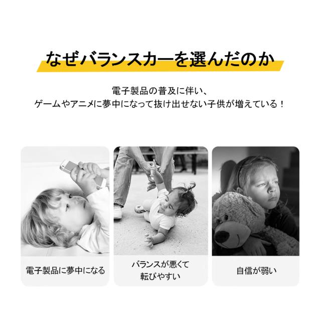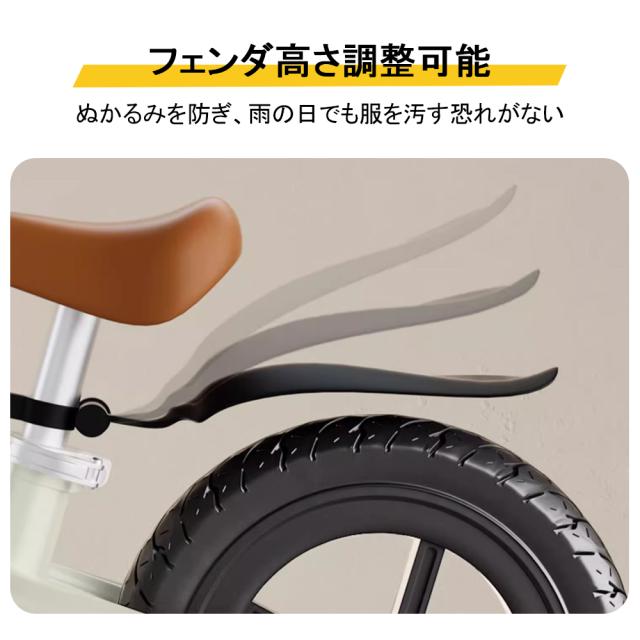 【安全な設計】グリップエンドは衝撃吸収性が高く、転倒時の衝撃を和らげお子様の手をしっかり守ります。高品質のノーパンクタイヤ装備、メンテナンス不要で、耐久性に優れる!地面からの衝撃も抑えるます。【快適な体験】クッション性に優れたサドルで、乗り心地がいい。衝撃低減効果も抜群!シート形状も人間工学に基づいた形状で、子供に快適なサイクリングをサポートします。砂利や小石の多い公園、荒れた悪路でも、子供たちは楽しく乗ることができます。【360度回転可能ハンドル】転倒してハンドルバーが体にぶつかった時の衝撃を緩和してくれます。【超軽量 ポータブル】金属の使用を減らし、2kgの圧倒的な軽さを実現しました。子どもが一人でも扱いやすく、持ち運びも簡単なので気軽に遊びに行けます。持ち手付きでが付いているので、持ち運びに便利です。ご注意1 安全のため、公道や坂道で乗らないでください。2 転倒した場合の頭部の衝撃やケガを減らすために、使用時は幼児用ヘルメットを着用してください。3 危険な使い方をしないよう、保護者の方は子供から目を離さないようにしてください。