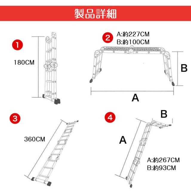 はしご 梯子 ハシゴ 脚立 足場 万能はしご 多機能はしご 3.6m アルミはしご 折りたたみ スーパーラダー 送料無料