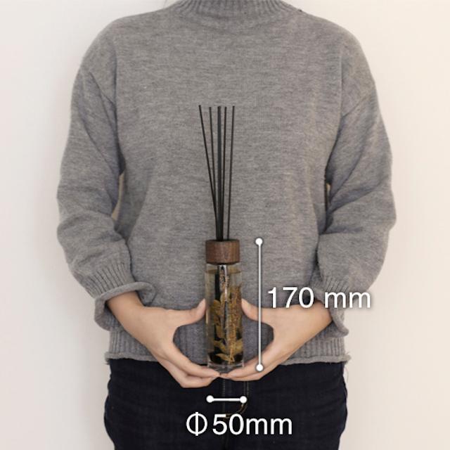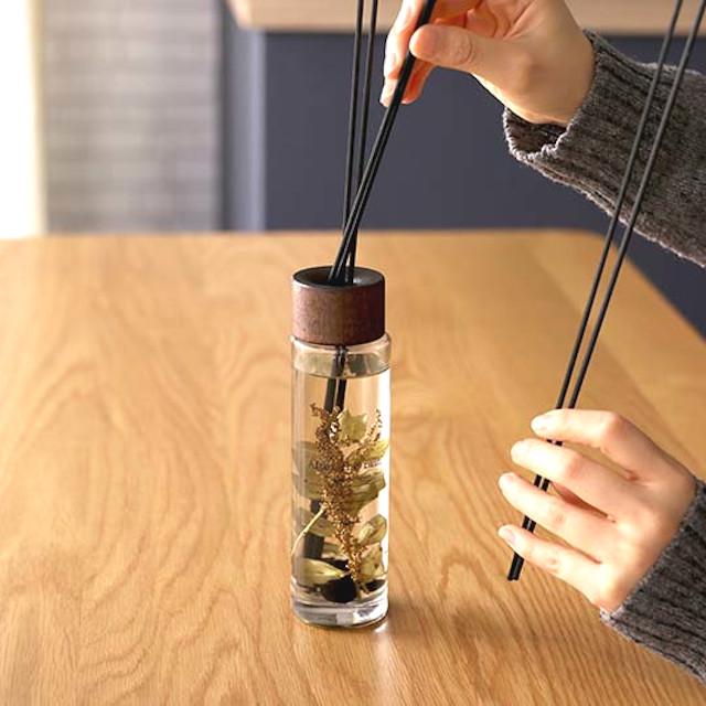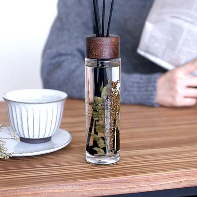 落ち着いた色の花と香りがチョイスされたハーバリウムのリードディフューザー。