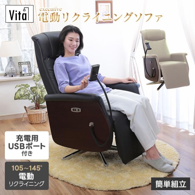電動 リクライニング ソファ エグゼクティブ 電動パーソナルソファ グレージュ ブラック リクライニングチェア 一人掛け スマホスタンド USBポート 翌日配送