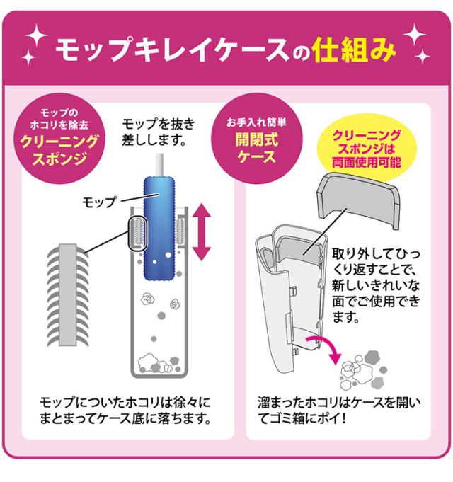 ■モップをケースに入れるだけでほこり・ゴミを取ってくれるモップキレイケース付きです。