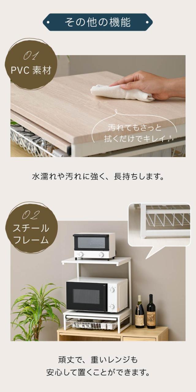 レンジ上ラック トースターラック レンジラック 2段 幅50 キッチン収納 スライド かご付き 冷蔵庫上ラック 炊飯器 ラック 電子レンジ 大型レンジ対応 キッチンラック キッチン収納棚 木製 省スペース