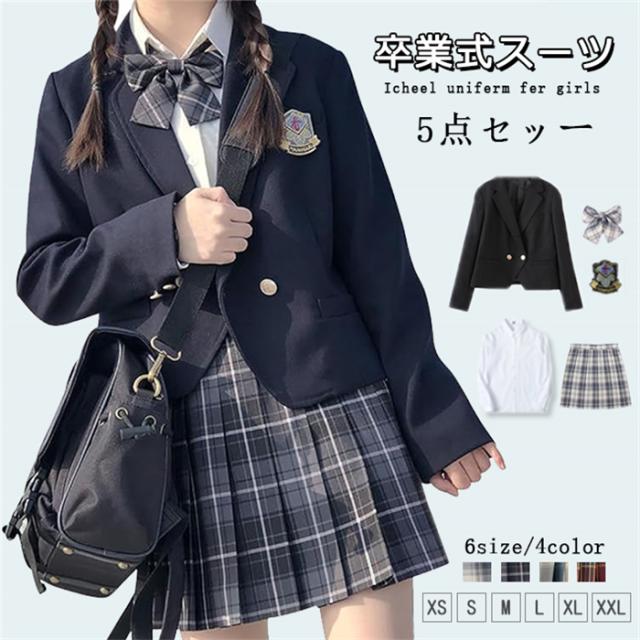 【送料無料】 卒業式 スーツ 女の子 5点セット スーツ女の子 フォーマルスーツ 子供スーツ jk制服 高校生 小学生 小学校 XS S M L XL XXL 150 160 キッズ ジャケット ブラウス チェックスカート フォーマル リボン 中学生 スカート