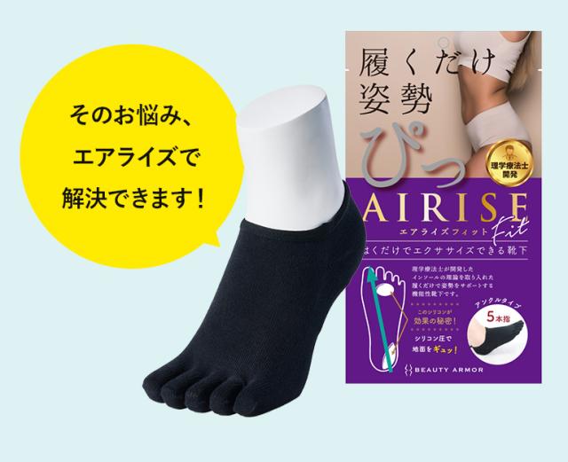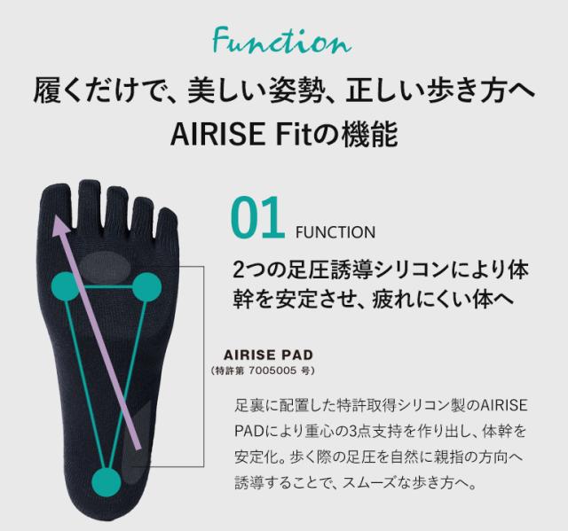 AIRISE Fit エアライズ フィット 正規品 5本指 ソックス 姿勢サポート トレーニング エクササイズ 運動 筋トレ 靴下 アンクルソックス 足首靴下