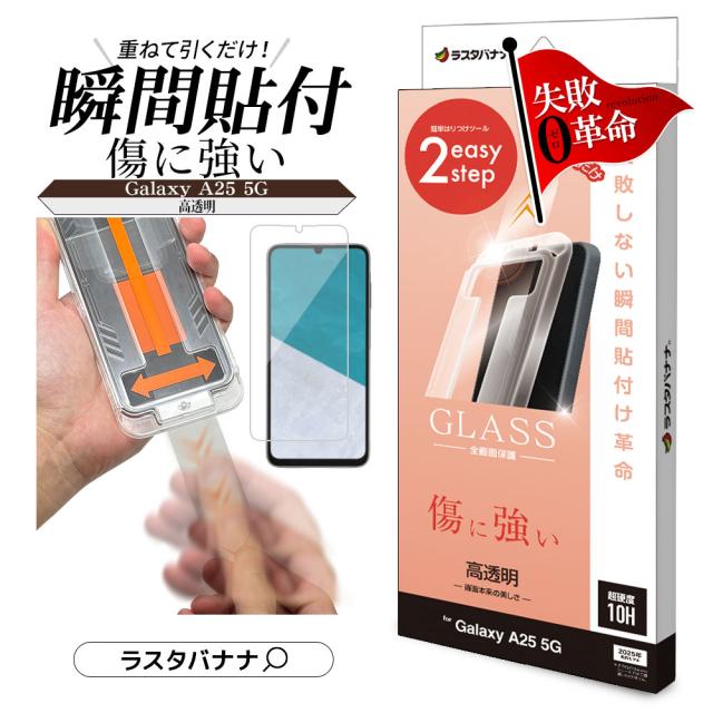 Galaxy A25 5G ガラスフィルム 全面保護 高光沢 高透明 クリア 傷に強い 貼付革命 貼り付け革命 瞬間張り 失敗しない瞬間簡単貼り付け レボリューション 0.33mm 硬度10H ガイド枠付き ギャラクシー SC-53F SCG33 保護フィルム MTK4807GA25 ラスタバナナ