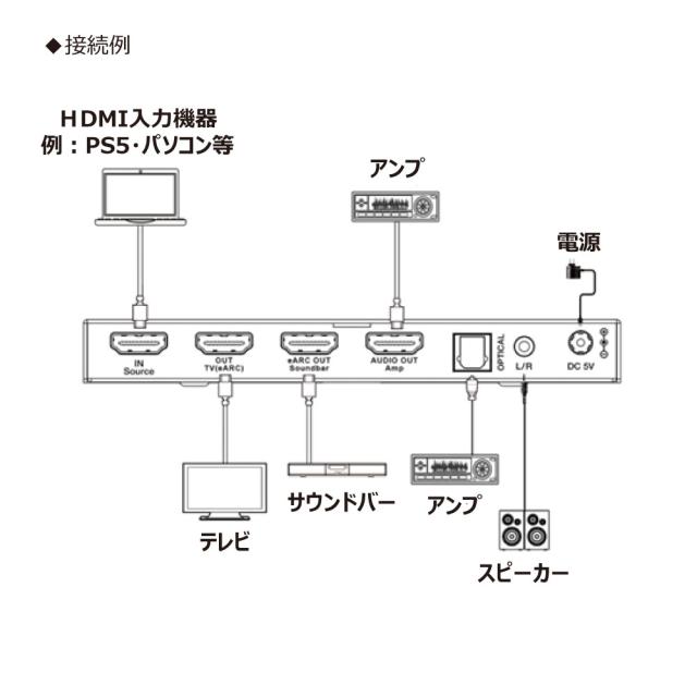 HDMI設備でオーディオ信号をサウンドバー、アンプ、