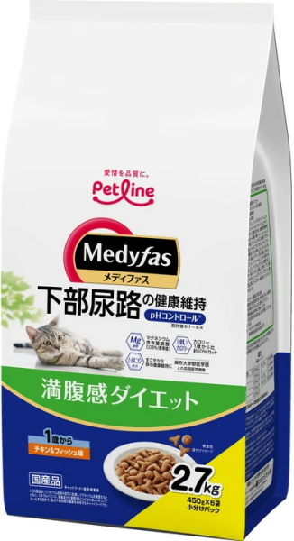 ペットライン メディファス 満腹感ダイエット 1歳から チキン&フィッシュ味 2.7kgx4個(ケース販売)MFD−56