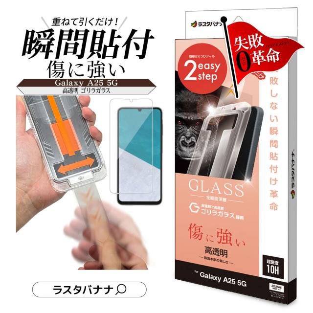 【送料無料】Galaxy A25 5G ガラスフィルム 全面保護 高光沢 高透明 ゴリラガラス採用 0.33mm 硬度10H 瞬間貼り ギャラクシー SC-53F SCG33 MTK4809GA25 ラスタバナナ