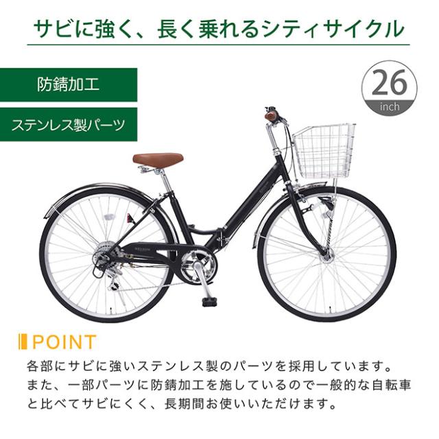 シティサイクル 26インチ 【全品P3倍】 自転車 折りたたみ自転車 シマノ6段変速 オートライト マイパラス