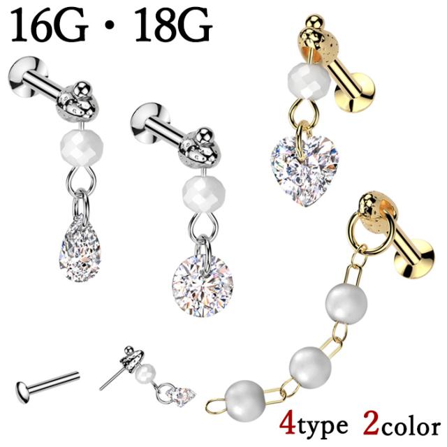 ボディピアス 16G 18G ラブレットスタッド シンプル ジュエル ラウンド ハート ティアドロップ パール プッシュ ワンタッチ ラブレットスタッド 耳ピアス ヘリックス サージカルステンレス ラブレット リップ 軟骨ピアス nnktp