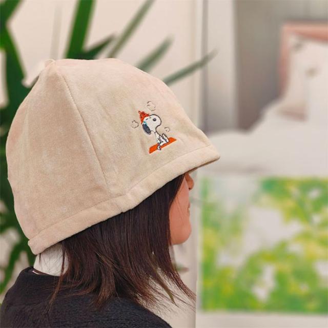 サウナを快適に楽しみたい方へ、スヌーピーの刺しゅうがかわいいサウナハットです。