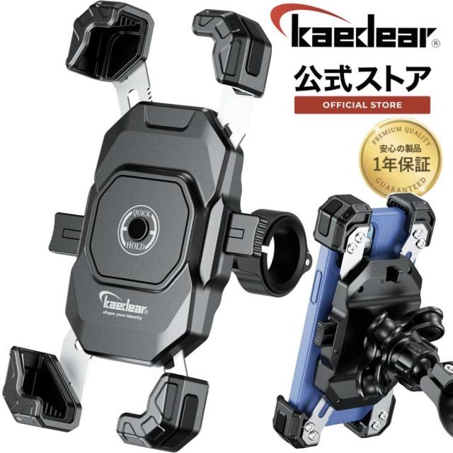 Kaedear(カエディア) バイク スマホホルダー バイク用スマホホルダー 携帯ホルダー 振動吸収 マウント 付属 スマホ スタンド アルミ製 マウント ハンドル ミラー 原付 オートバイ 自転車 / スマホ厚さ15mmまで 縦長 クイックホールド2 KDR-M11CPJ (Airアブソーバー付き)