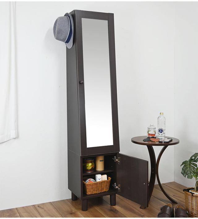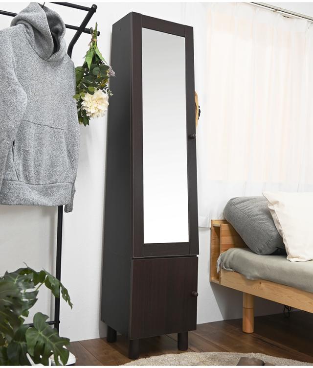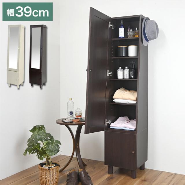 スタイルミラー付きスリムラック ミラー付き収納 収納棚 小物入れ ストッカー 鏡付き ミラーラック 収納ラック 寝室 リビング 全身鏡 鏡付き収納 扉付き収納 姿見 幅39 小物収納 ミラー付き