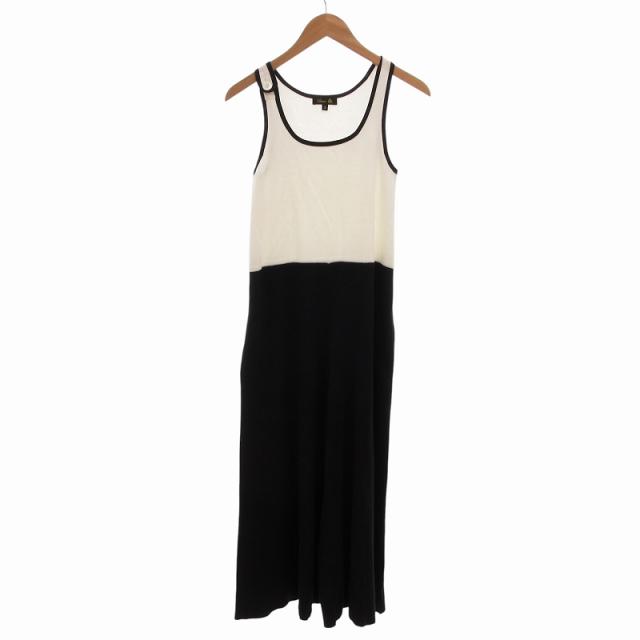 【中古】ドゥロワー Drawer ミラノ バイカラー オールインワン サロペット ノースリーブ 白 ホワイト 黒 ブラック 2