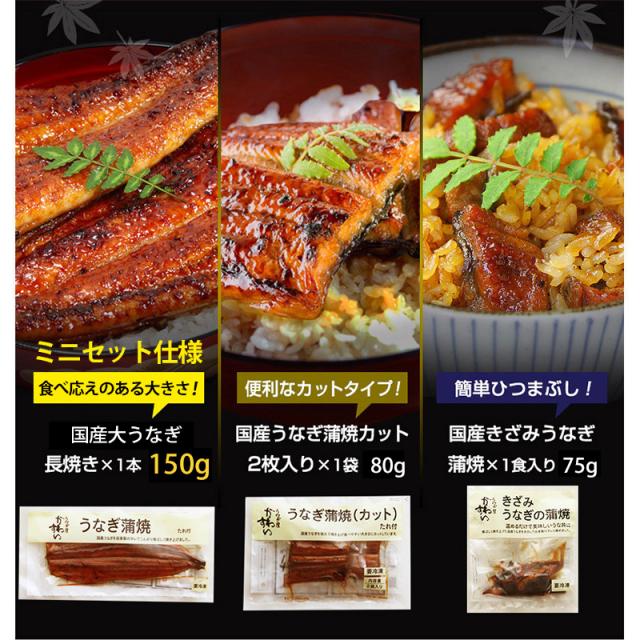 うなぎ屋かわすい ギフト 国産 うなぎ 蒲焼き 3種 ミニ お楽しみセット ウナギ 鰻 蒲焼 ギフト 贈答 お父さん 父 お母さん 母 誕生日 お祝い 贈り物 プレゼント グルメ 食べ物 土用の丑の日 内祝い お返し 誕生日プレゼント 冷凍 送料無料