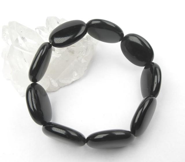 ブラックオブシディアン オーバルビーズ ブレス ネガティブの強い浄化 スピリチュアルな成長を助ける 天然石 パワーストーン B1ob005