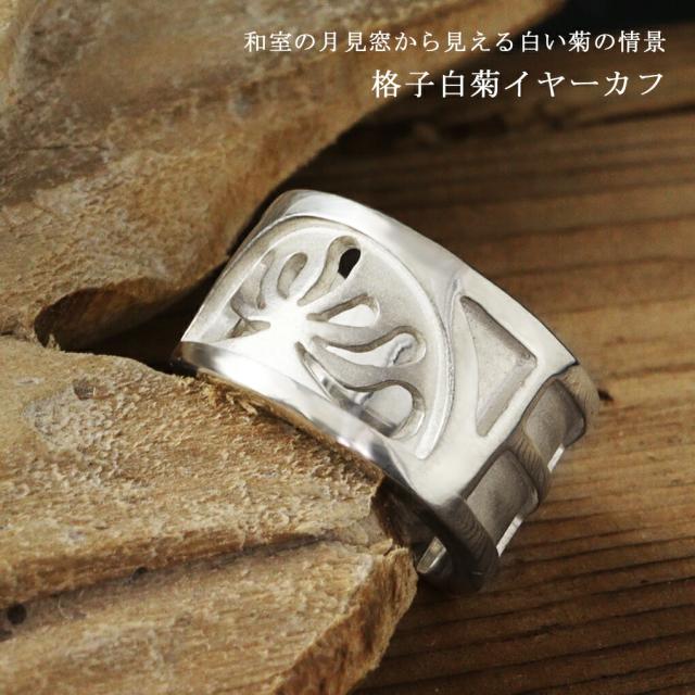 kokonoe 格子白菊 イヤーカフ シルバー 1P 片耳用 菊 糸菊 花 モチーフ 月見窓 格子 透かし 和風 和 和物 ノンホールピアス イヤークリップ